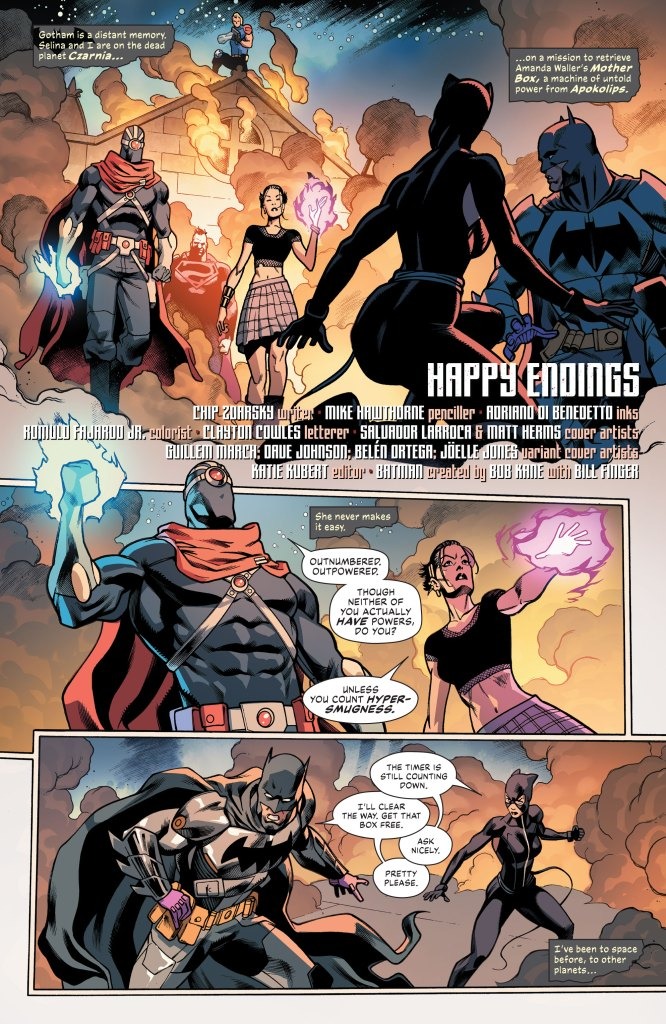 Absolute Power Tie-In! In a thrilling Absolute Power tie-in, Batman and Catwoman must find the key to Amanda Waller’s plans in an extremely remote—and shockingly dangerous—location! Living (dying?) up to their name, some of the Suicide Squad won’t be coming back from their mission, but will Batman and Catwoman stay free to fight another day?! Plus, a Birds of Prey backup finds the Birds facing Waller’s minions in an unexpected adventure!